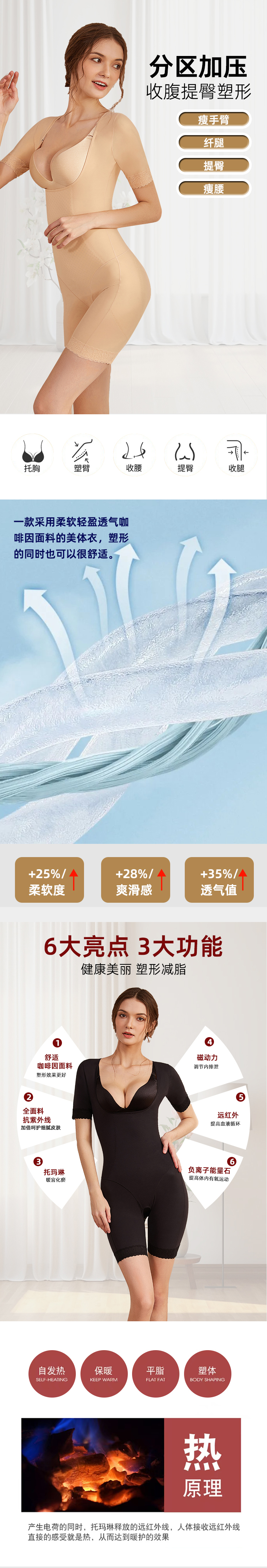 中袖体雕衣1件装 进口咖啡因面料 内置磁石 托玛琳 锗元素